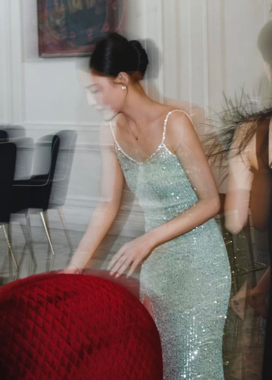 Lindiwe Kill Bill Mint Sequins Slit Dress